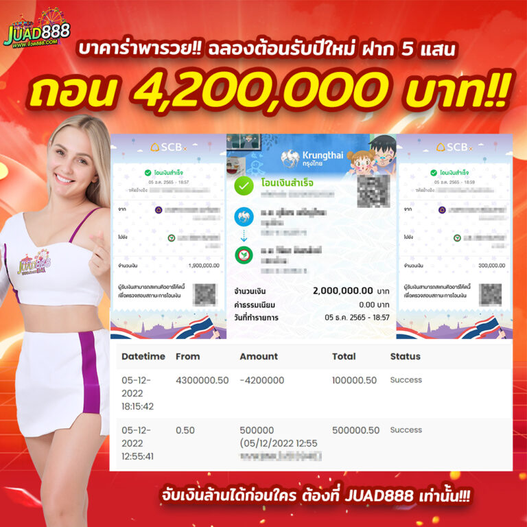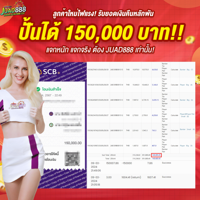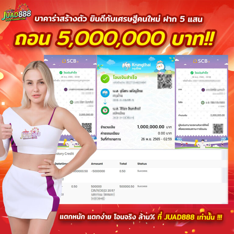 ความโดดเด่นของ juad888 ไม่ได้มีเพียงแค่ความเป็นเว็บตรงที่ไม่ผ่านเอเย่นต์ซึ่งช่วยเพิ่มความมั่นใจในด้านความปลอดภัยและความโปร่งใส แต่ยังใส่ใจในการพัฒนาระบบทางการเงินให้มีประสิทธิภาพสูงสุด เพราะรู้ดีว่าผู้เล่นทุกคนต้องการความรวดเร็วและความมั่นใจในทุกขั้นตอน ไม่ว่าจะฝากหรือถอนเงินก็สามารถทำได้เองตลอด 24 ชั่วโมง รองรับทั้งการโอนผ่านธนาคารชั้นนำและทรูวอลเล็ท เพิ่มความสะดวกสบายให้ผู้เล่นทุกกลุ่ม และที่สำคัญคือไม่มีขั้นต่ำในการฝากหรือถอน ช่วยให้ผู้เล่นทุกระดับสามารถเข้าถึงได้ง่าย ไม่ว่าจะเริ่มต้นด้วยเงินทุนเท่าไหร่ก็สามารถสนุกไปกับเกมเดิมพันได้อย่างมั่นใจ