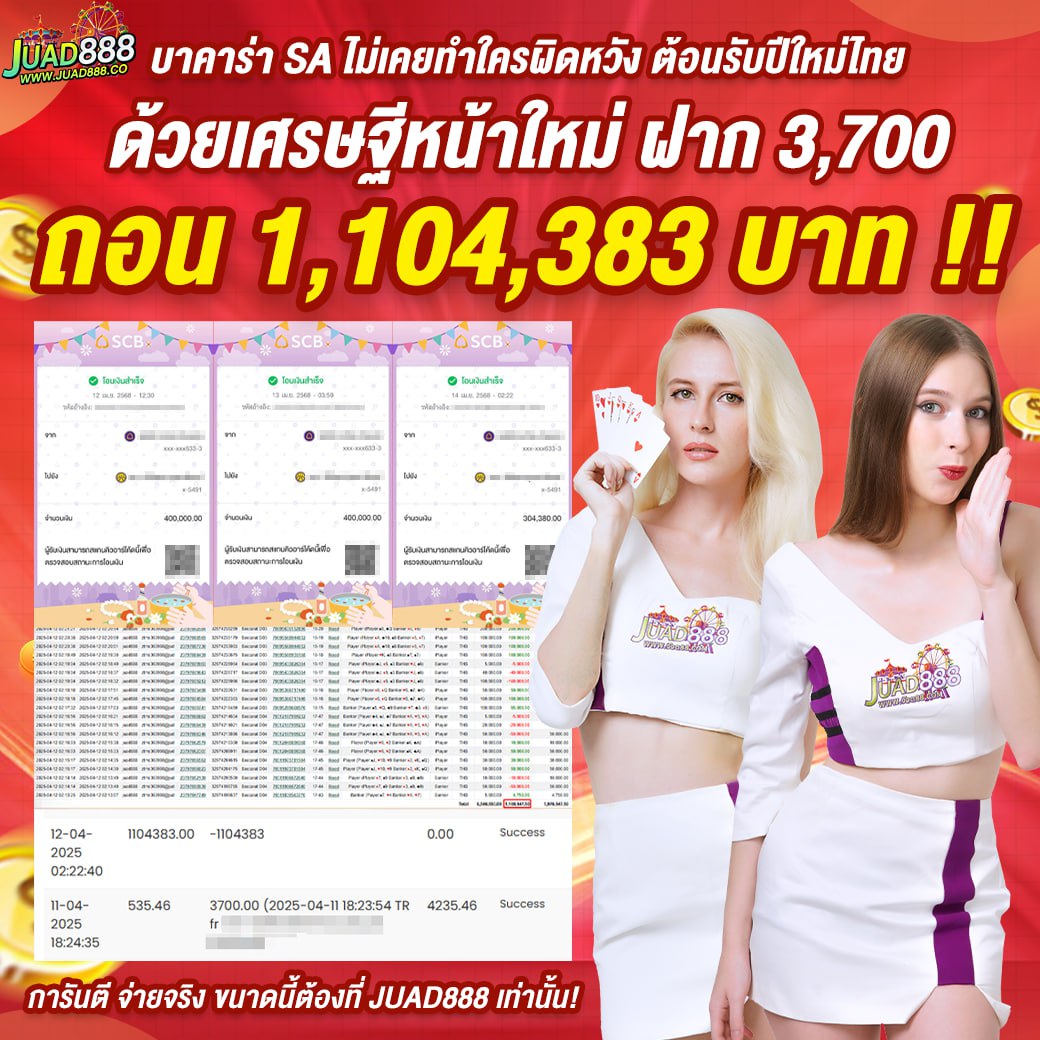 - juad888 การันตีทุกยอดจ่าย เล่นได้เท่าไหร่ก็ถอนออกได้จริง ไม่มีโกง
