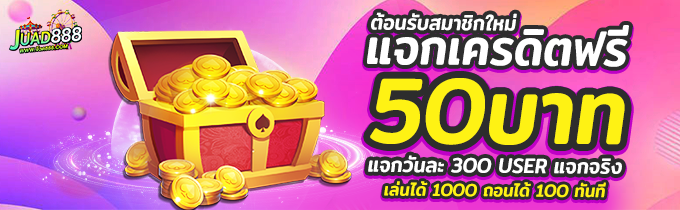 แจกเครดิตฟรี 50 บาท สำหรับลูกค้าใหม่วันละ 300 user แจกทุกวัน (ทำยอดถึง 1000บาท ถอนเงินได้ 100 บาท ทันที)